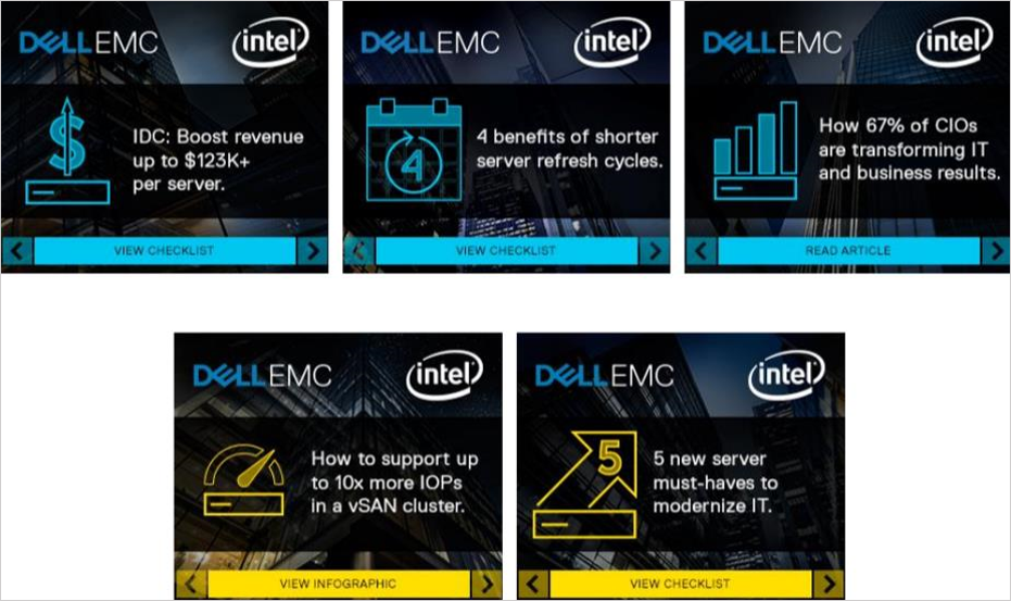 Senior Copywriter: Wrote marketing content for global campaigns to include infographics, checklists, social media kits, sales email, online banners, and video scripts. Products: Data Protection, Data Storage, Servers, Hyper-converged, Cloud.